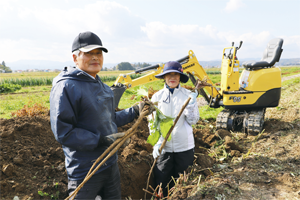 阿賀川や日橋川の流れが作り出した立川は、作土が深く水捌けが良い土壌が有名。まさに根菜の天国。肥料も農薬も極力使わないとおっしゃる慶徳さんは、長さ100メートルの畝4本で立川ごぼう、1本で長いもを栽培しています。